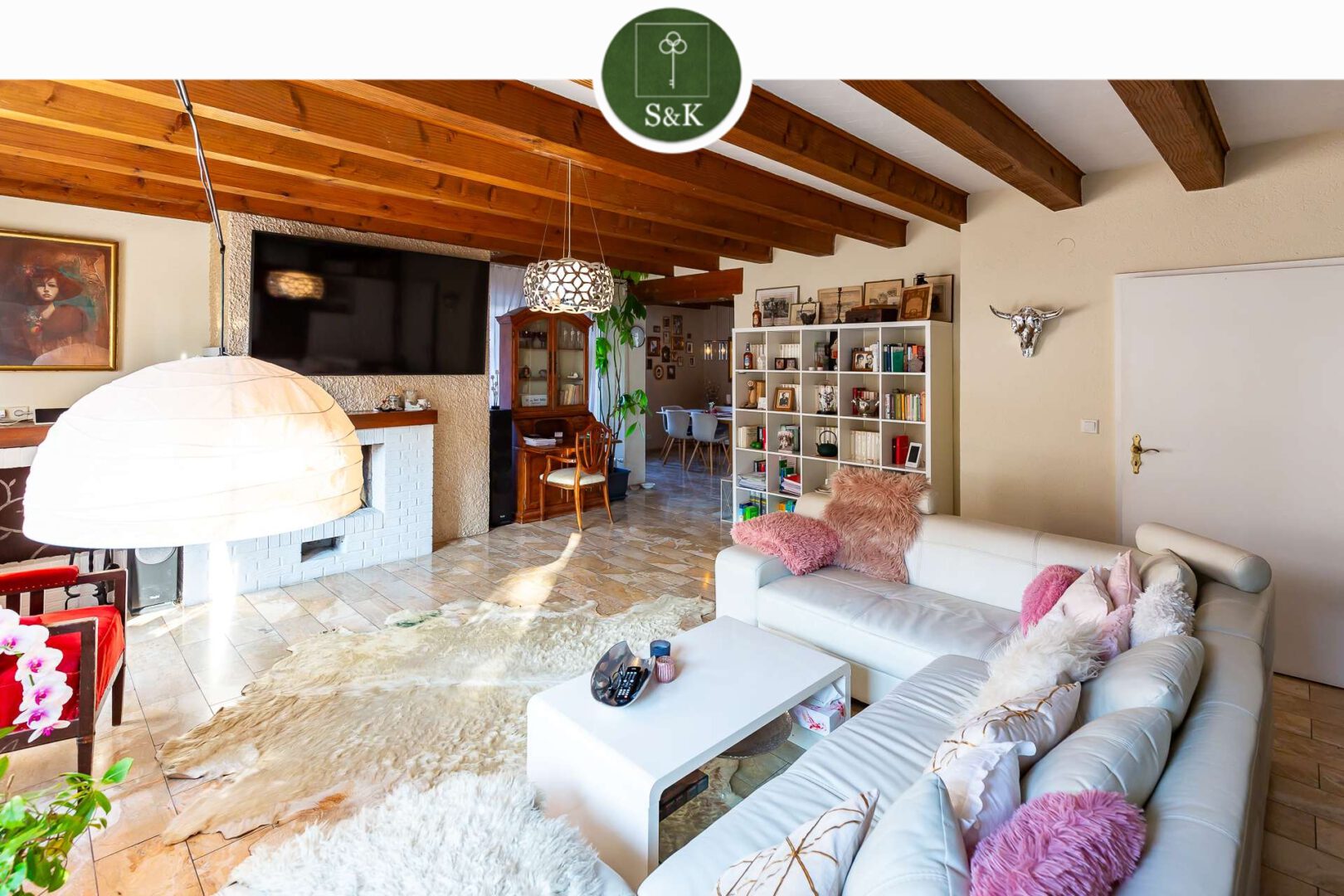 Bereits beim Betreten des Hauses empfängt Sie eine Atmosphäre von Stil und Behaglichkeit. Der offene Wohn- und Essbereich im Erdgeschoss bildet das Herzstück des Hauses. Hier lädt ein offener Kamin zu gemütlichen Stunden ein, während die edlen Marmorböden und die hochwertige Ausstattung ein luxuriöses Ambiente schaffen.