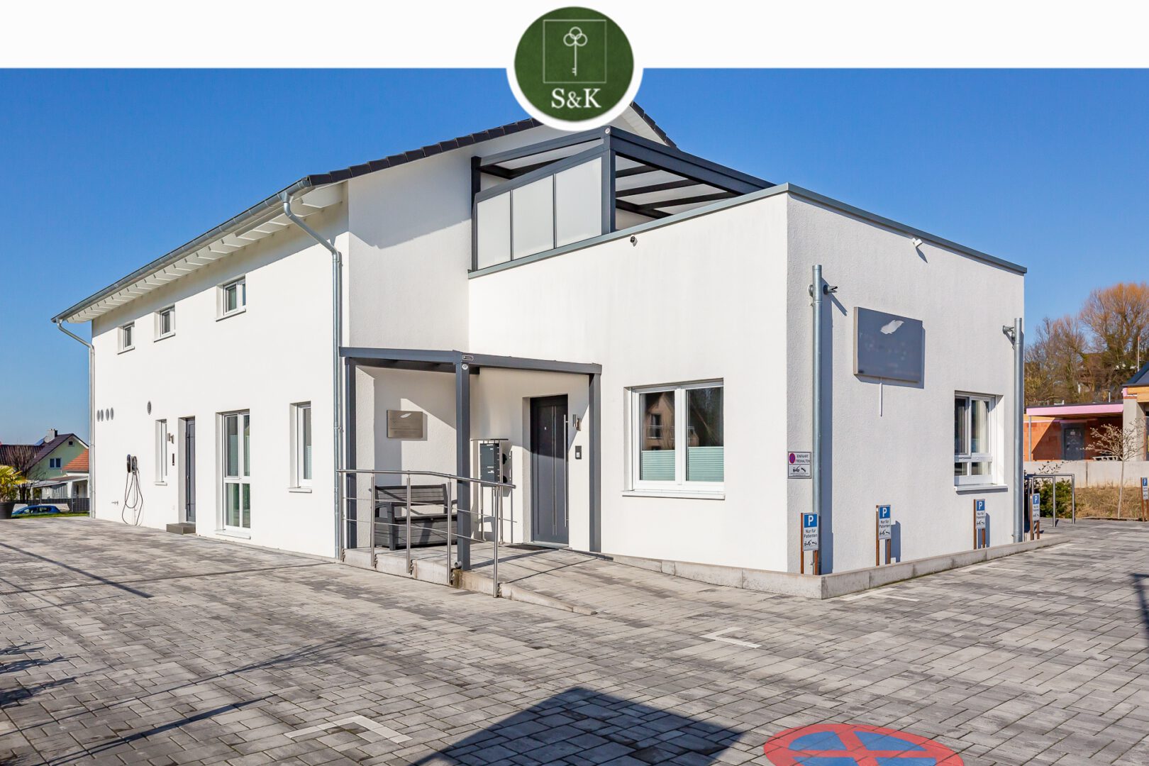 Das Grundstück bietet sieben PKW-Stellplätze sowie einen rund 300 m² großen Gartenbereich – ein deutlicher Standortvorteil sowohl für Gewerbemieter als auch für Wohnraummieter.