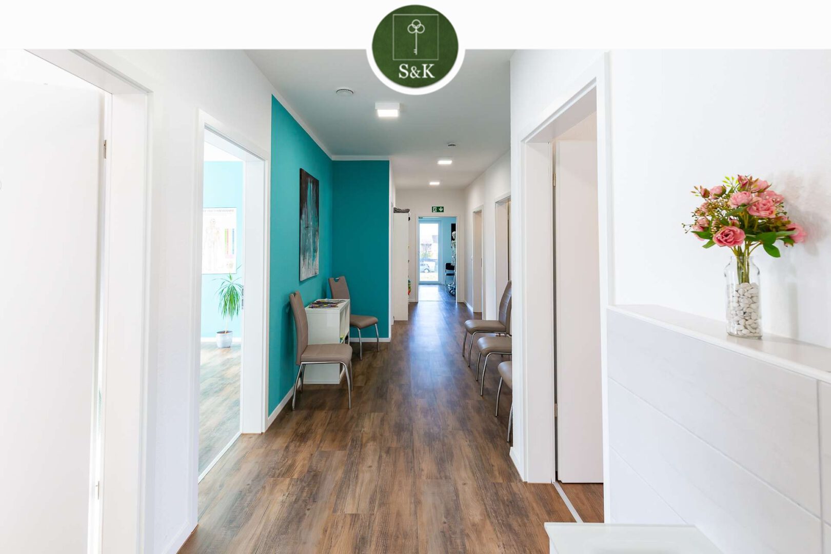 Die Gewerbefläche im Erdgeschoss umfasst ca. 153 m² und ist derzeit als Physiotherapiepraxis genutzt. Die durchdachte Aufteilung mit fünf Behandlungs- bzw. Büroräumen, großzügigem Warte- und Empfangsbereich, Aufenthaltsraum mit Küche, Archiv sowie getrennten Sanitärbereichen bietet ideale Voraussetzungen für eine nachhaltige gewerbliche Vermietung. Dank der modernen Ausstattung und der repräsentativen Erscheinung ist die Fläche auch für andere Dienstleistungs- oder Praxisformen hervorragend geeignet. Die klare Struktur unterstützt eine langfristige Drittverwendbarkeit und minimiert Leerstandsrisiken.