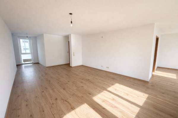Der großzügige Wohn- und Essbereich bildet das Herzstück der Wohnung. Große Fensterflächen sorgen für viel Tageslicht und schaffen eine angenehme Wohnatmosphäre. Von hier aus gelangen Sie auf den Balkon, der zusätzlichen Freiraum im Alltag bietet. Zwei gut geschnittene Schlafzimmer eröffnen vielfältige Nutzungsmöglichkeiten – ob als klassisches Schlafzimmer, Kinderzimmer oder Homeoffice.