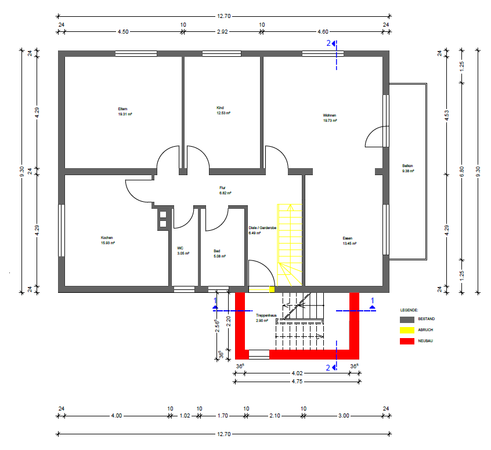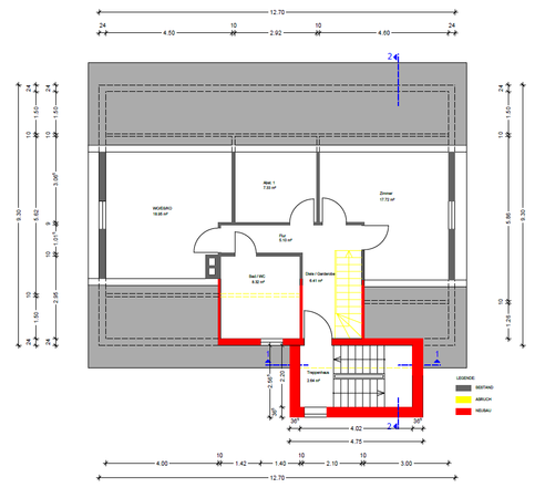Ein besonderes Highlight ist das vorhandene Ausbaupotenzial im Dachgeschoss. Hier können zusätzliche ca. 64 m² Wohnfläche realisiert werden, wodurch sich das Gebäude zu einem vollwertigen Dreifamilienhaus erweitern lässt. Ein entsprechender Bauantrag mit geplantem Außentreppenhaus sowie einer Gaube liegt bereits vor. Damit sind die baurechtlichen Voraussetzungen für eine Erweiterung vorbereitet und eröffnen attraktive Perspektiven zur Wertsteigerung und Renditeoptimierung.